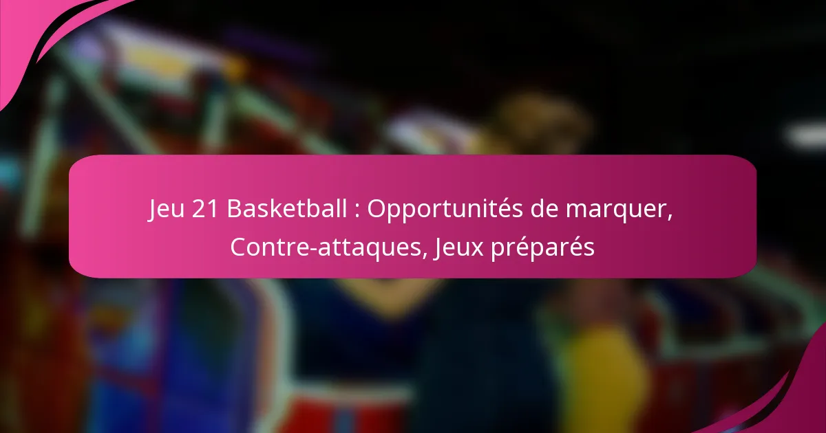 Le basketball Game 21 présente des défis de scoring uniques qui nécessitent des joueurs d’adapter leurs stratégies pour maximiser les points tout en naviguant dans des règles spécifiques. Des tactiques défensives efficaces sont essentielles pour perturber le flux offensif des adversaires, et les joueurs doivent être capables de reconnaître et de contrer ces stratégies pour améliorer leur performance globale. Comprendre à la fois les techniques de scoring et les formations défensives est crucial pour réussir dans ce jeu dynamique.