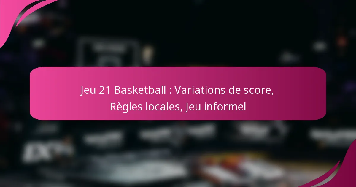 Le jeu 21 est un jeu de basket-ball informel largement apprécié qui se concentre sur le score individuel et la compétition, généralement joué avec deux joueurs ou plus. L’objectif est d’atteindre 21 points par divers moyens de marquer, qui peuvent inclure des règles locales uniques ayant un impact significatif sur le jeu. Les variations de score dépendent souvent du type de tir effectué, avec des valeurs différentes attribuées aux paniers, aux tirs à trois points et aux lancers francs, rendant les accords préalables cruciaux pour la clarté et l’équité.