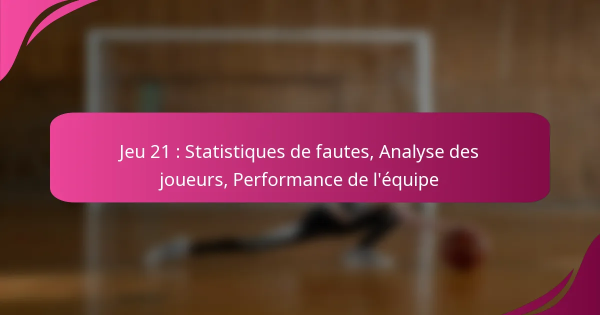 Dans le match 21, les statistiques de fautes révèlent des informations significatives sur la dynamique de l’équipe et le comportement des joueurs. Comprendre les types de fautes, les totaux d’équipe et les comptes individuels des joueurs peut aider à évaluer l’impact sur le résultat du match.