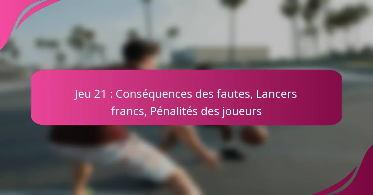 Les fautes intentionnelles dans le Jeu 21 sont des manœuvres stratégiques utilisées par les joueurs pour perturber le jeu et obtenir un avantage. En commettant délibérément des fautes, les équipes peuvent manipuler le déroulement du jeu, en particulier dans des moments critiques, mais ces actions entraînent des conséquences significatives, telles que des lancers francs pour l’équipe adverse. Comprendre l’utilisation tactique et les répercussions des fautes intentionnelles est essentiel pour les joueurs et les entraîneurs cherchant à influencer l’issue du match.